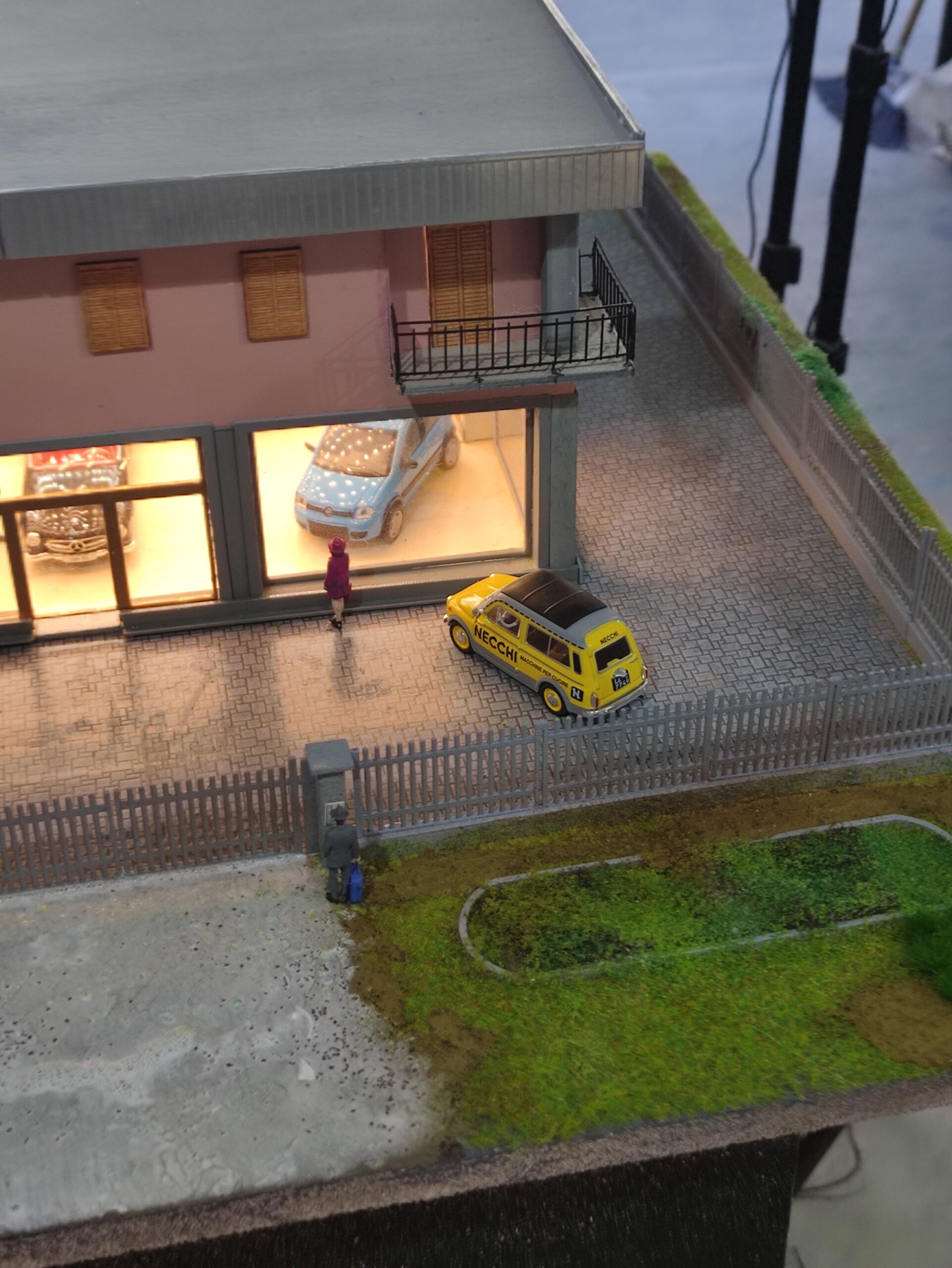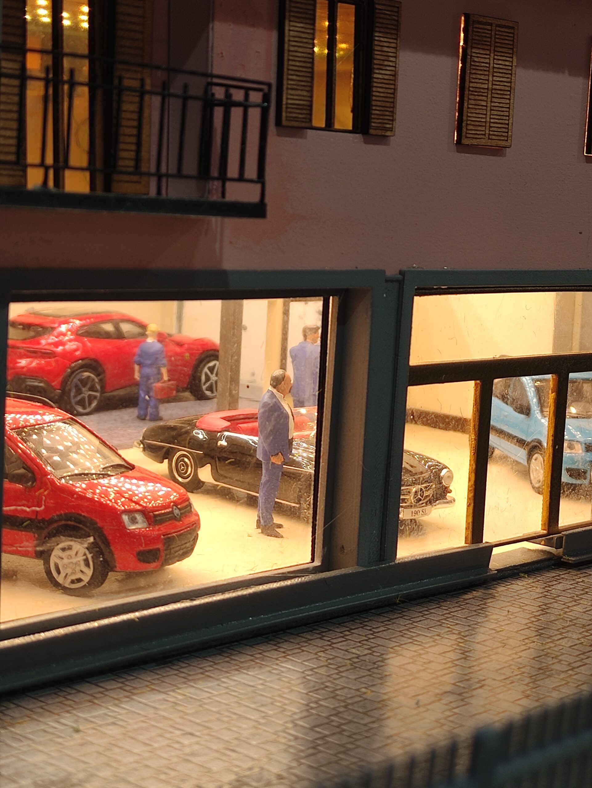 Diorama scala 1/43 “Autosalone maga” con illuminazione e portone funzionante