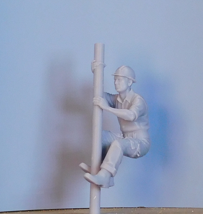 Modello in resina stampato in alta definizione, da colorare, raffigurante un operaio su un traliccio.